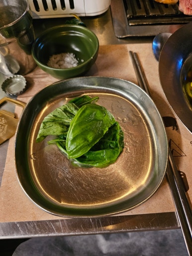 바질쌈이라는 특이한 메뉴가 있어서 함께 시켜봤다