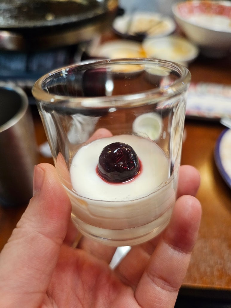 후식으로 블루베리가 귀여운 요거트도 주심