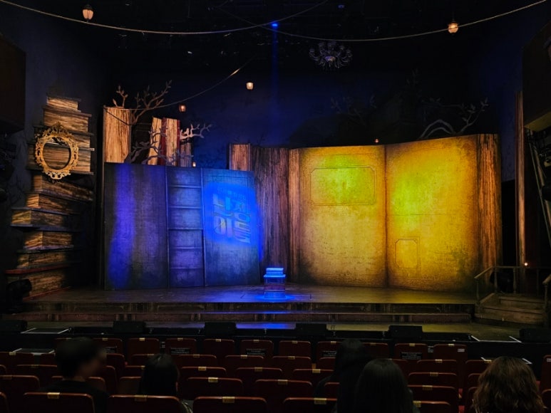 동화책처럼 생긴 무대장치 넘 기여버따