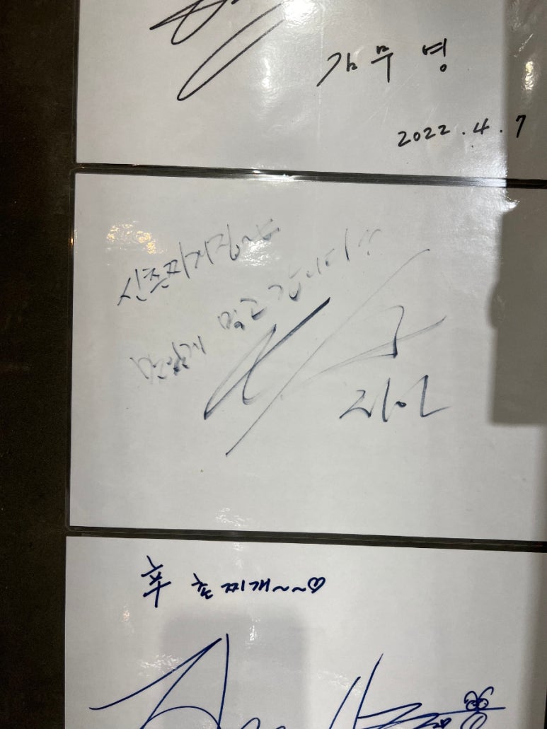 입구 옆에 뮤배분들의 싸인도 여럿 붙어있어요