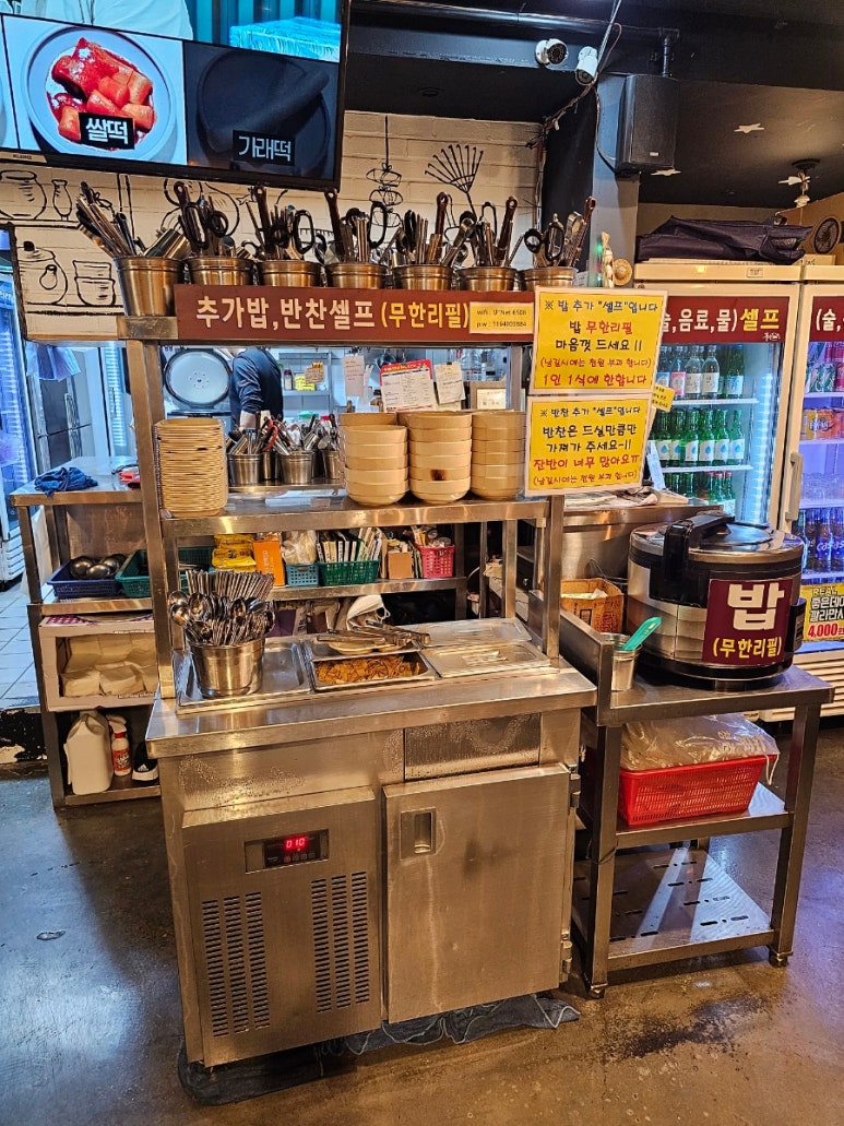 반찬과 밥을 리필할 수 있는 셀프바도 있어요