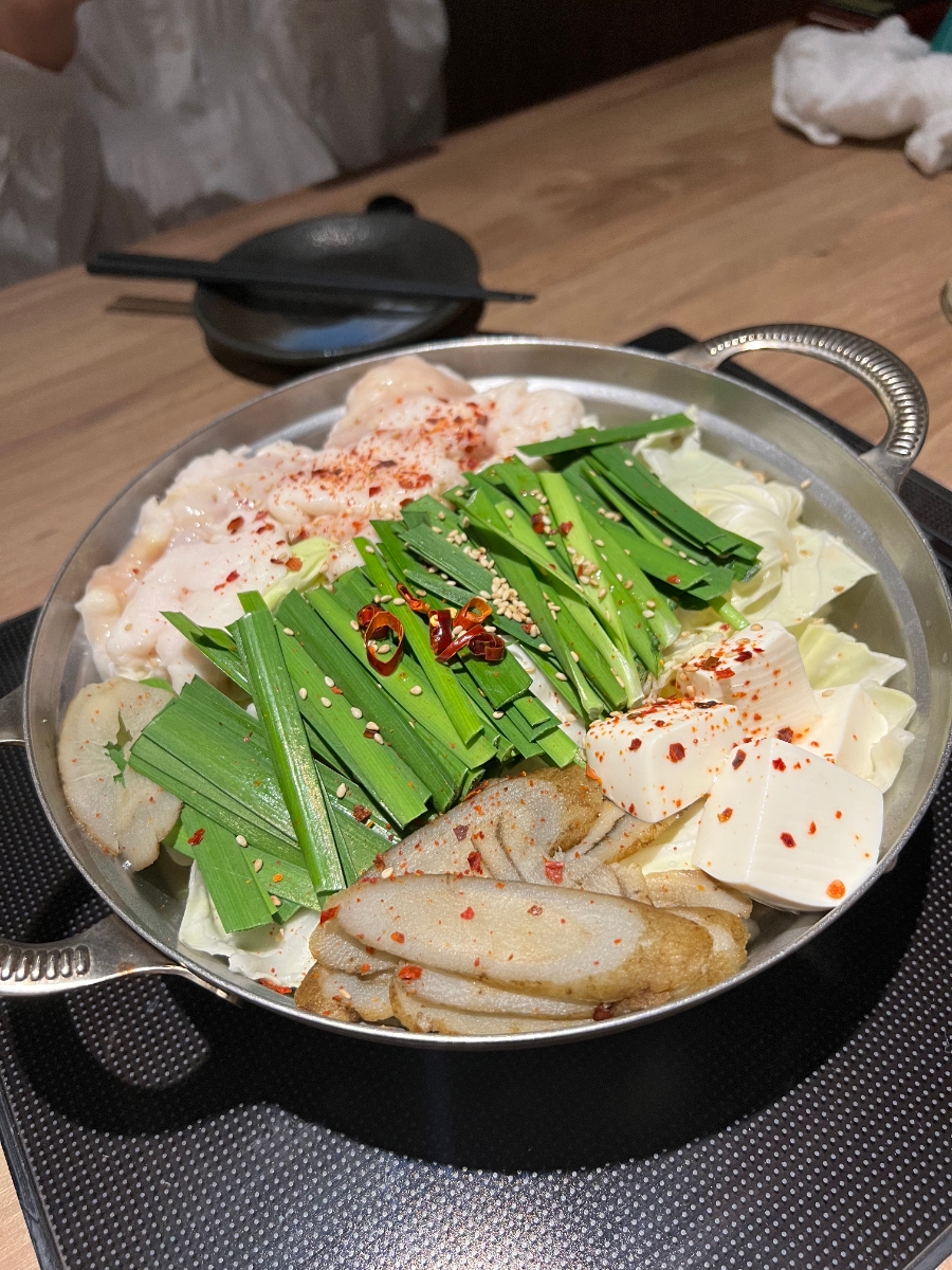 기본 모츠나베 2인 + 오이반찬 + 치킨 가라아게